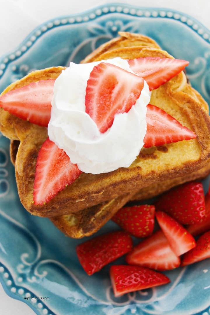 Experience an unforgettable brunch with our easy Cinnamon French Toast recipe. Enriched with a special French toast batter using flour for a beautiful consistency. Enjoy the delicious flavor of cinnamon with plain bread slices, topped with real maple syrup, fresh strawberries, and heavenly whipped cream.