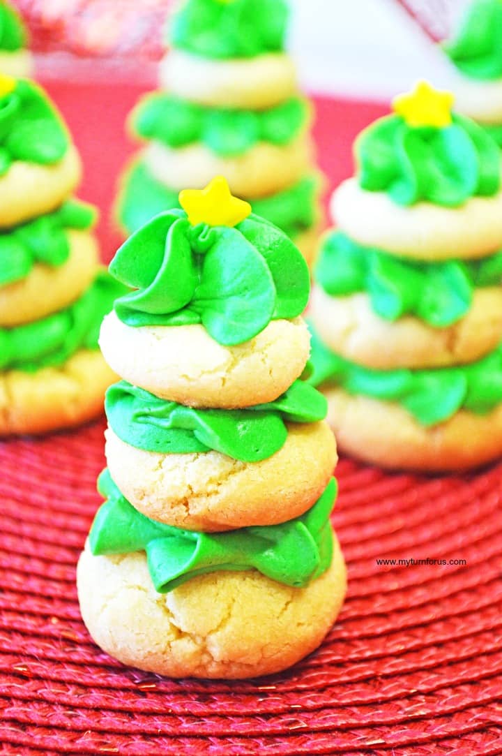 A delightful and easy recipe for 3D Christmas Tree Cookies. These festive treats are made by baking simple old-fashioned sugar cookies in three graduated sizes, stacking them with vibrant green cream cheese frosting, and topping each with a gold star sprinkle for a standout holiday dessert that's perfect for parties or gifting.