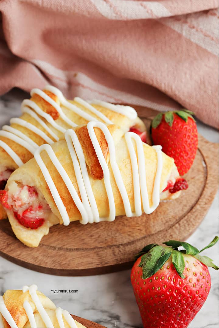 These Strawberry Cheesecake Crescent Rolls are the perfect sweet treat for any occasion! Whether you serve them for breakfast or brunch, they’re sure to impress with their flaky crust and creamy strawberry filling. This strawberry filled croissants recipe makes eight delicious filled rolls topped with a homemade glaze.