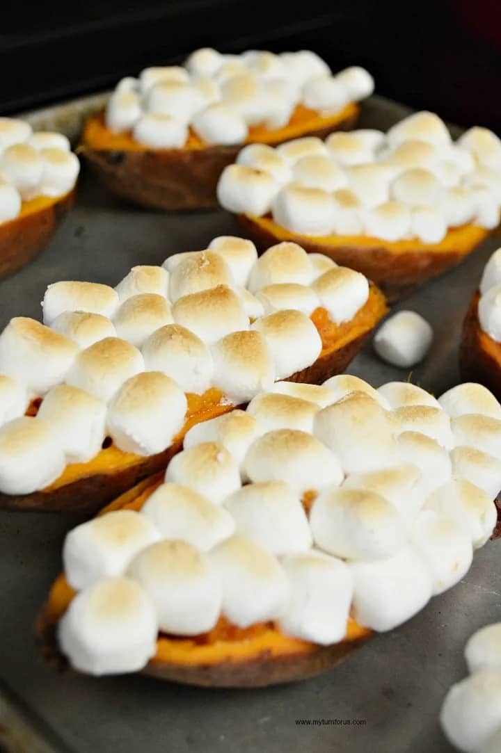 Swap the same old sweet potato casserole for our Twice Baked Sweet Potatoes. A heavenly blend of brown sugar, cinnamon, and butter wrapped up in a tender sweet potato skin and crowned with golden, gooey marshmallows.