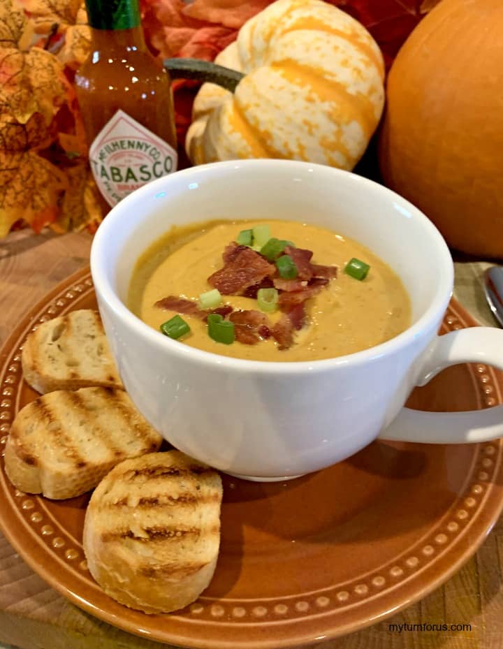 Cozy up to fall with this Roast Pumpkin Soup with Bacon—creamy, smoky, and kissed with bourbon and a hint of heat! Made with your jack-o’-lantern leftovers (or canned puree), it’s ready in 45 minutes and perfect for chilly nights or holiday tables. Top with crisp bacon and green onions for a bowl that screams comfort.