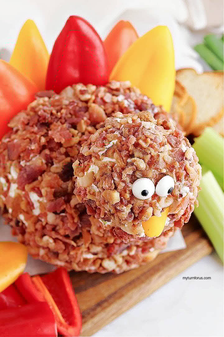 Are you looking for the perfect appetizer to impress your Thanksgiving guests? Look no further than this savory and scrumptious Turkey Cheese Ball. This classic dish combines the flavors of Thanksgiving with the indulgence of a creamy cheese ball, making it the ultimate crowd-pleaser. This fun turkey shaped appetizer cheeseball for Thanksgiving is coated with bacon and adored with colorful bell peppers.