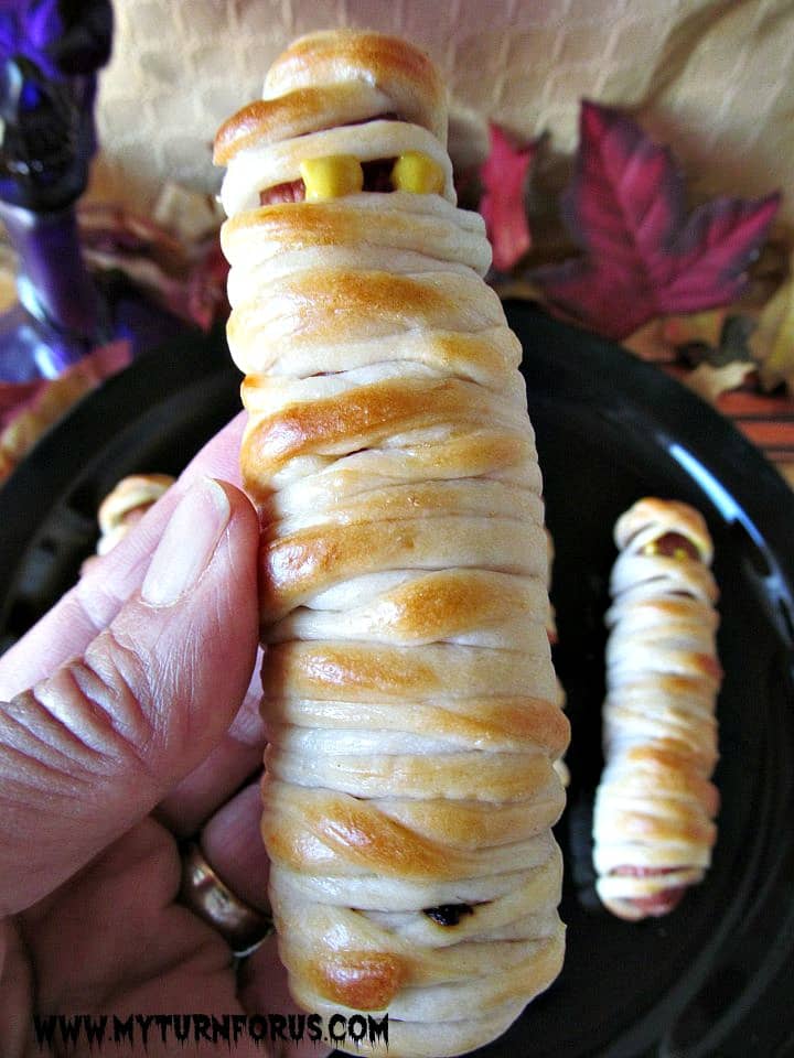 Mummies may be spooky, but these delicious hot dogs will have you screaming for more! Get ready for a spooktacular treat with these Mummy Hot Dogs! Perfect for Halloween parties or a fun family meal, these hot dogs wrapped in pizza dough are easy to make and delightfully ghoulish.