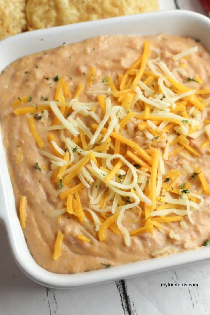 Cheesy Bean Dip, perfect for parties or casual gatherings. Combining refried beans, Rotel, cream cheese, taco seasoning, and cheddar cheese, this Tex-Mex dip is blended in a food processor, baked until bubbly, and topped with extra cheese. Ready in just 25 minutes, it’s served hot with tortilla chips, offering a creamy, zesty appetizer that’s sure to be a crowd-pleaser.