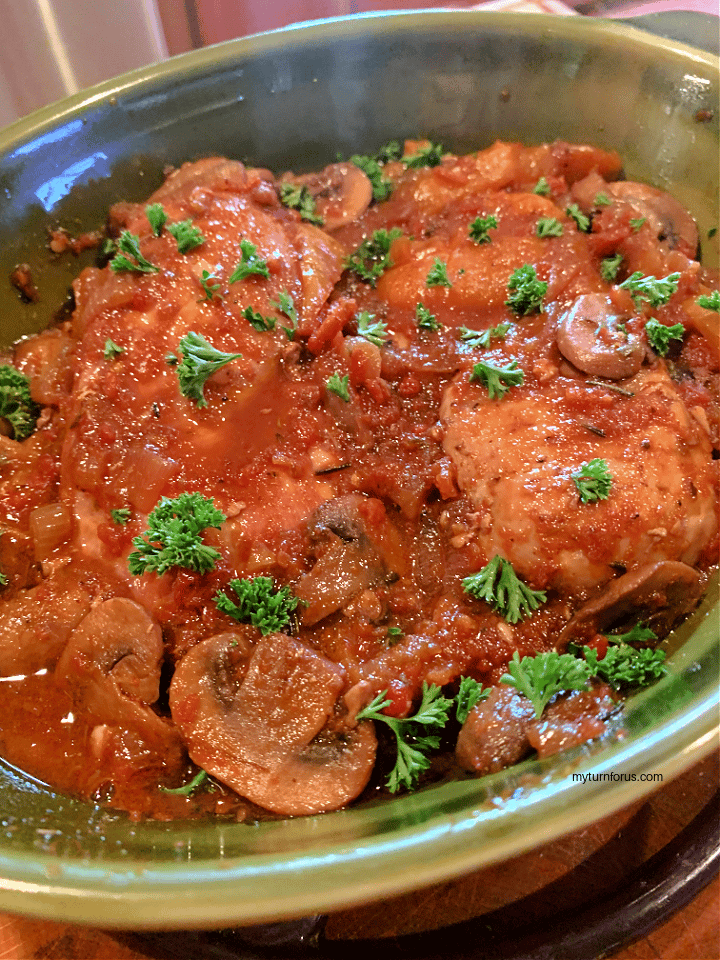 Transport your taste buds to Italy with this One Pot Chicken and Mushroom Cacciatore recipe! Loaded with rich flavors, this hearty, flavorful dish combines tender chicken, caramelized veggies, and a rich, aromatic sauce, all cooked in a single skillet for an easy weeknight dinner. We have made this recipe for years and this rich, hearty Chicken dish is one of my family’s fave. Perfectly comforting and packed with authentic Italian flavors, it pairs beautifully with a green salad and crusty bread!